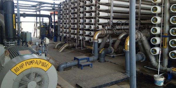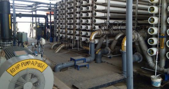 Step 2: Waste water is sent to the pre-treatment units where chlorine, antiscalant agents and acids are mixed into the waste water to prepare it for reverse osmosis. Post the pre-treatment water is pumped into the RO units which consists of 2 stages. Daily treatment capacity of the plant is 15,000 m3/day.