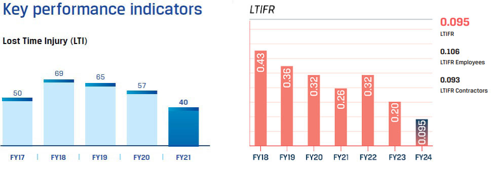 Safety is a priority area and due to the firm resolution of JSW towards vision ‘Zero Harm’ JSW saw a decline in the LTIFR.